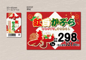 農産物はもちろん惣菜品など食品全般に添付のラベルやオリジナル商品のパッケージや食品スーパーのPOPやポスターなど多岐にわたる販促物の提案ができます。